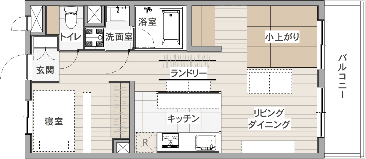 フルオープンであることから、夫婦や子どもと一緒にキッチンに立つ方や、オシャレなデザインにしたい方、開放感を重視したい方に適した間取りです。