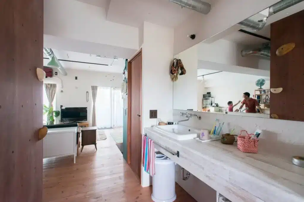 1974年築のマンションで、61㎡に4人家族が住めるようコンパクトにまとめつつも欲しい機能はしっかりと抑えた事例です。
