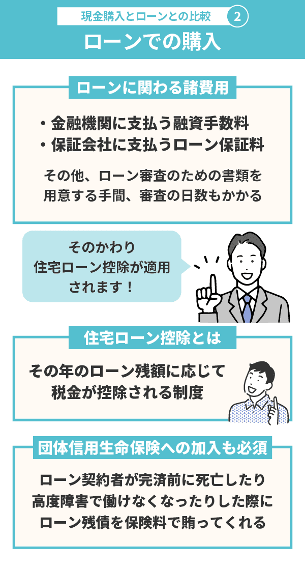 ローンで購入する場合は金利が発生するだけでなく、ローンに関わる諸費用として、