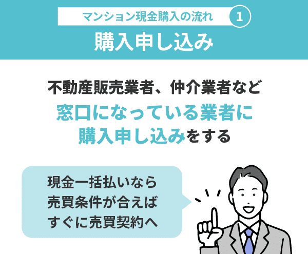では、実際にマンションを現金購入する際は、どのように進めていくのでしょうか?