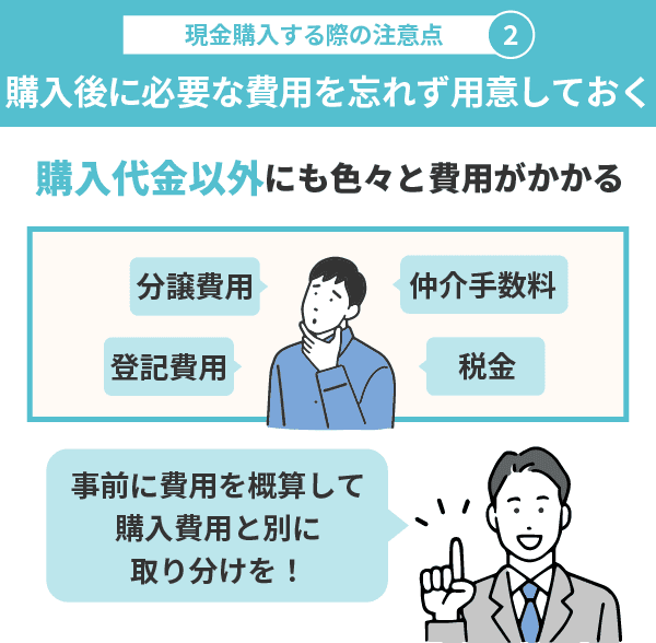 最後に、マンションを現金購入する場合に注意しなければいけないポイントを3つ、挙げておきましょう。