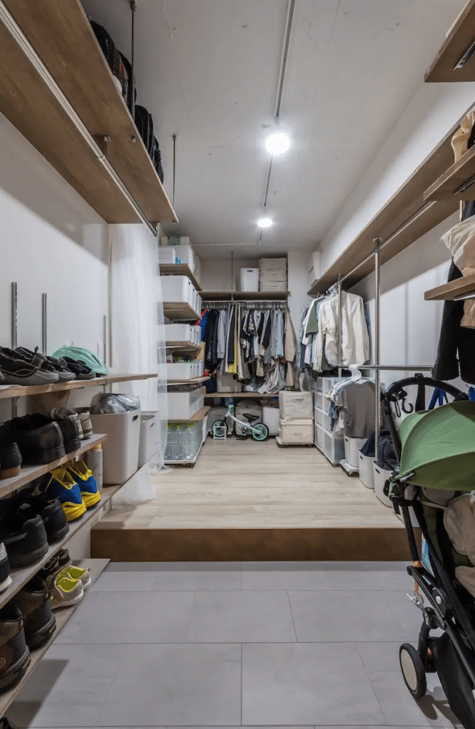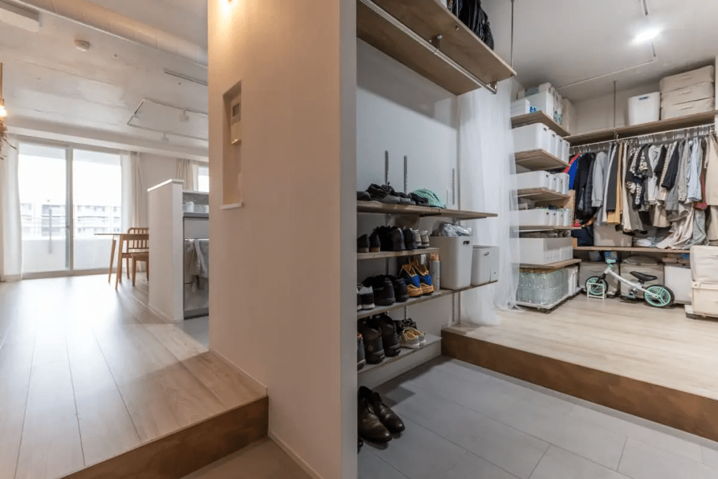 二世帯やルームシェア、子どもが多い家庭では、シューズクロークを活用することで玄関の面積を有効に使えます。