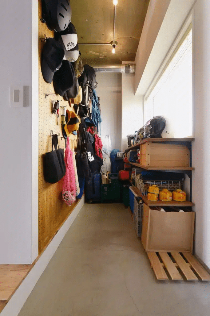 壁掛けの有効ボードは、バッグに小物、車や自転車のキーを引っかけて収納ができる上、壁以外のスペースを取らないのでイチオシです。また、可動棚はシューズクロークに比べて設置の費用も抑えられ、かつ高さ調整が可能なのでシューズ以外のモノも収納ができ便利です。シューズクロークだけに収納を集中させたり容量を大きくしなくても、壁面を活用すれば収納力が一気に増すだけでなく、予算も抑えられるメリットがあります。