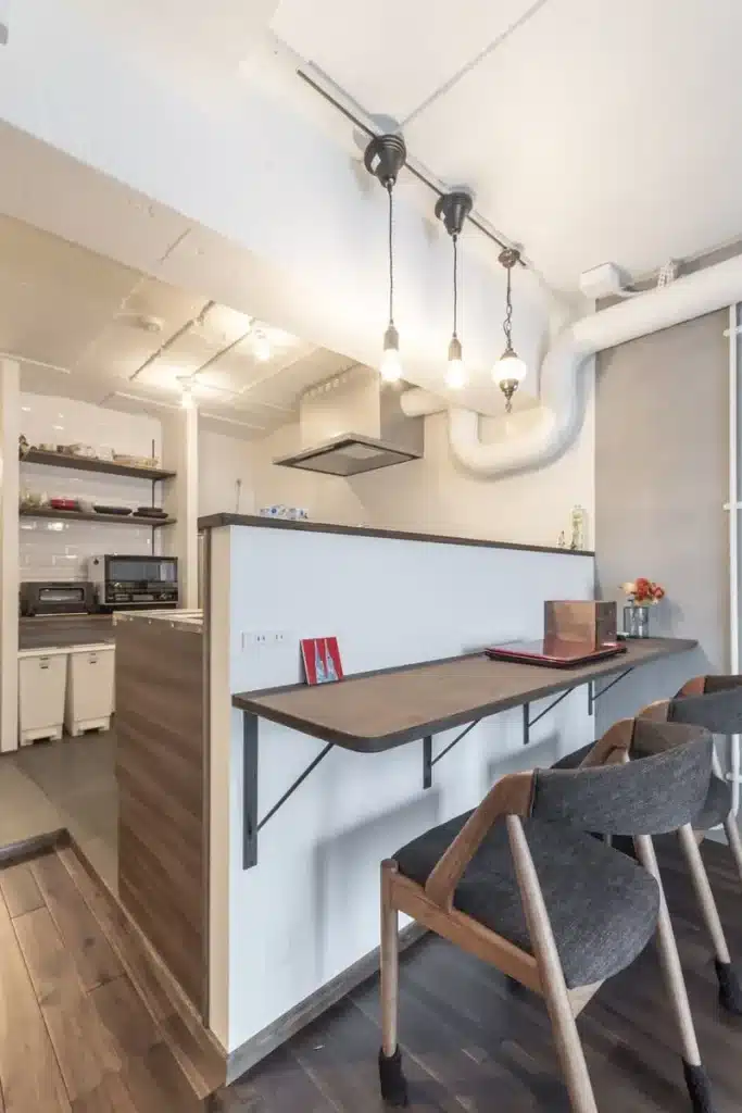 ライティングレールやペンダントライトなど多彩な照明計画を施すことで明るい空間に。