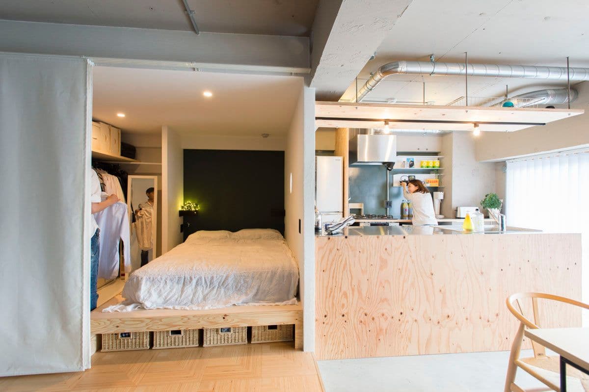 もともと3LDKだった間取りを、大きな1LDKに変更。