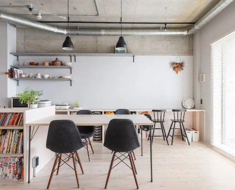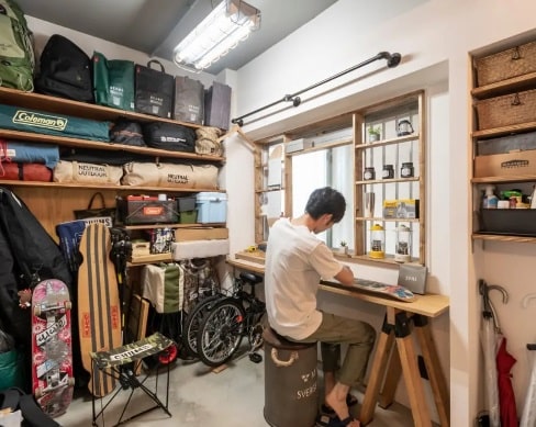 デスクと棚を一体化することで、コンパクトな空間でも作業しやすい環境が実現できます。