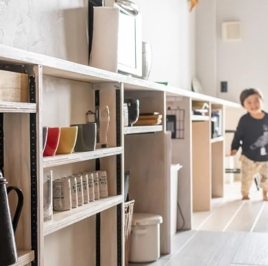 また、施工がシンプルなのでリノベーションの際にも取り入れやすく、「とりあえず棚を増やしたい」という場合にも便利です。一方で、見た目はどうしても“後付け感”が出やすいため、リビングなど人目に触れる空間では造作棚と比べるとデザイン面でやや物足りなさを感じるケースもあります。