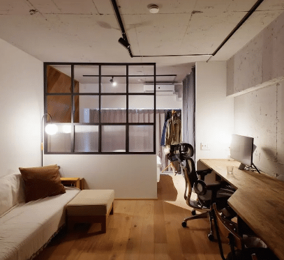 シンプルな機能美が光る、ホテルのようなワンルーム。必要なものだけを選び取り、コンパクトながら気持ちに余白の生まれる上質空間に仕上げました。限られた空間を最大限活かす動線に、落ち着いたトーンのデザイン。削ぎ落とされたミニマムさの中にも懐深さを感じるつくりにしました。
