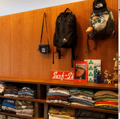 木の質感をベースに、異素材やディスプレイ要素を組み合わせることで、シンプルながらも個性のある印象に。