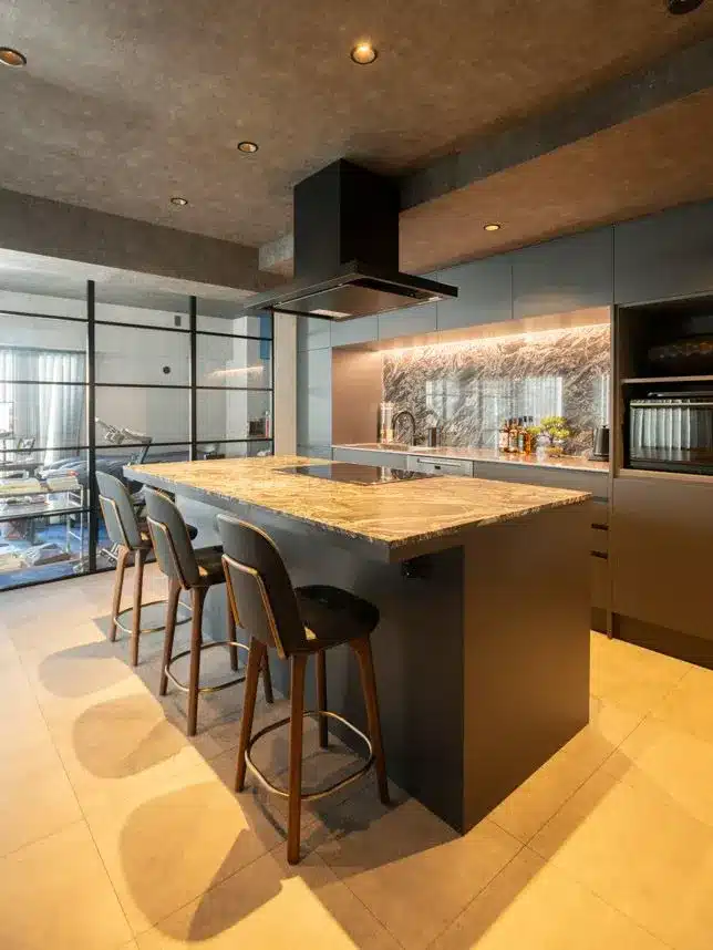 こだわりの天然石天板が非日常へとつなげる自慢のキッチン