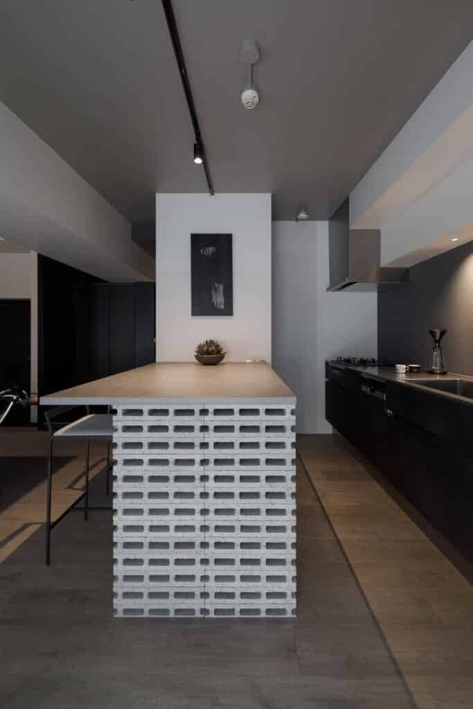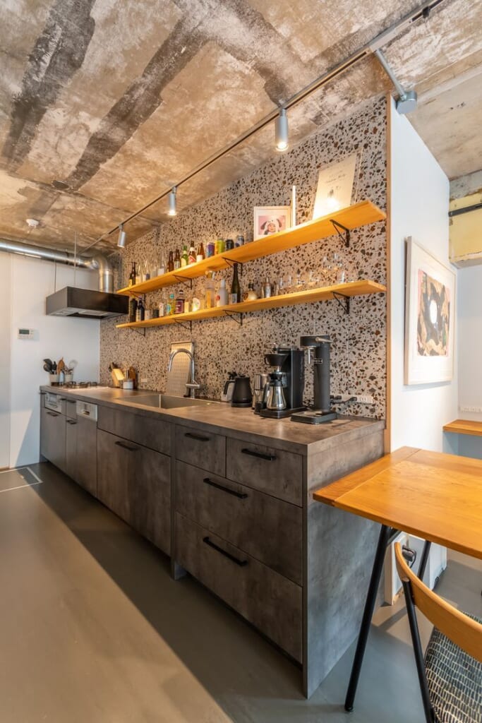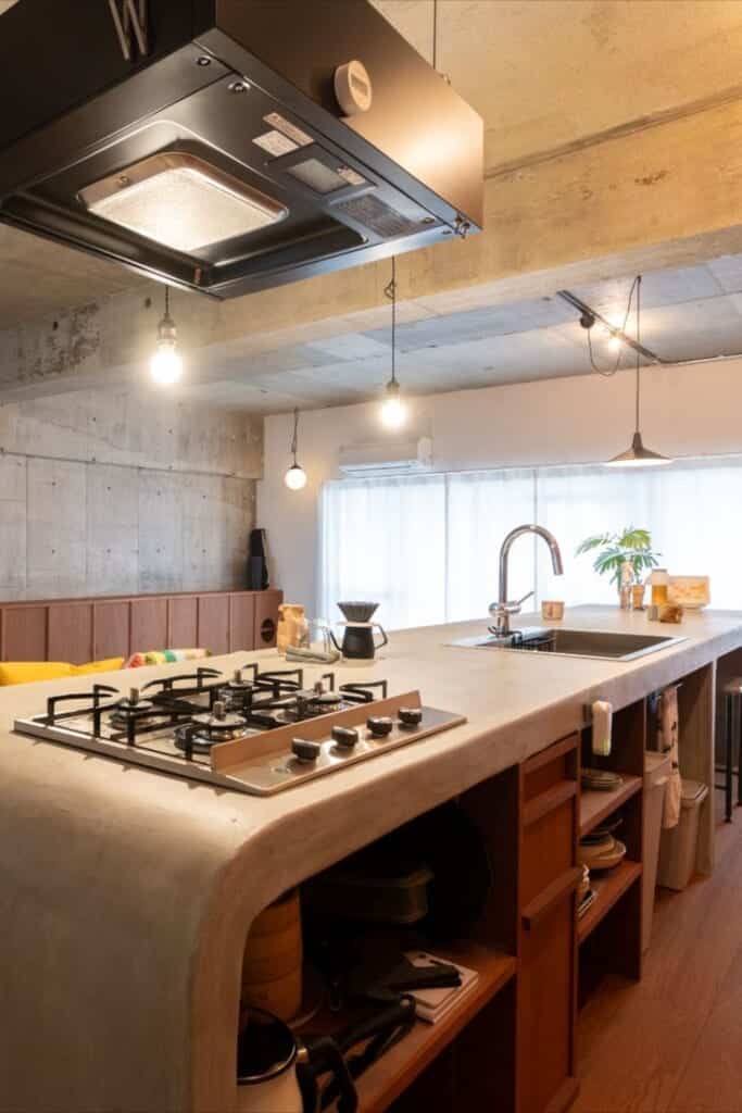 薄いブロックのキッチンカウンターが唯一無二の男前に