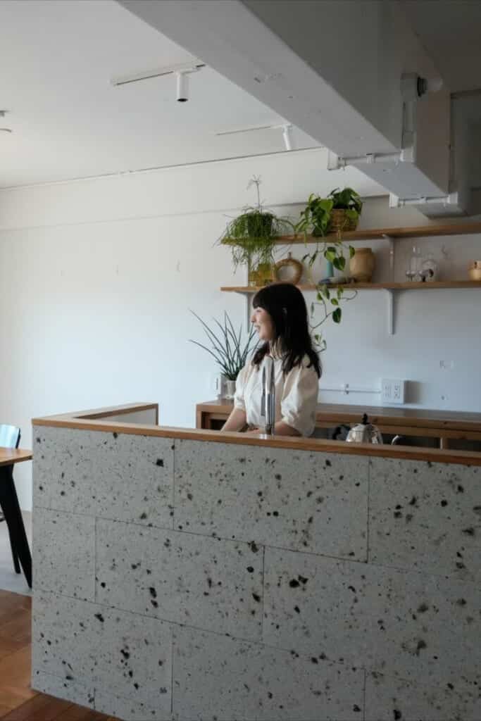 こちらはなんと、キッチンカウンターを薄いブロックを重ねて作成した事例です。