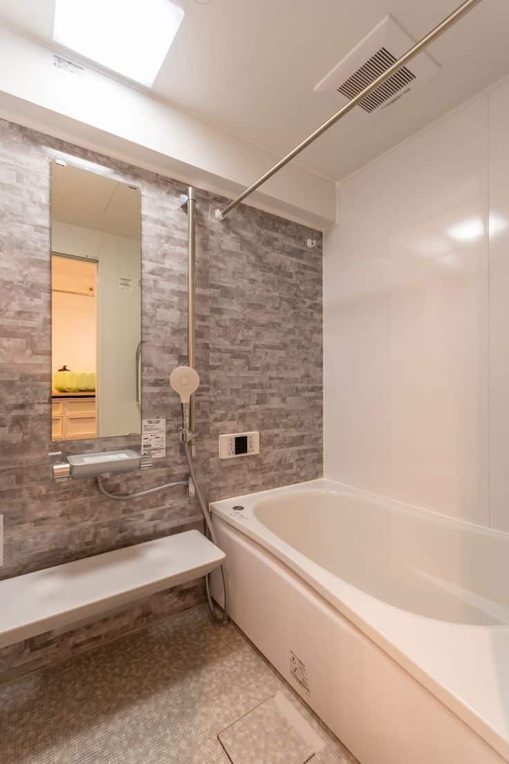 落ち着いた雰囲気のグレートーンのユニットバスは、お部屋の内装に合わせたもの。