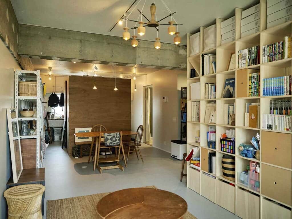 手持ち家具と調和する淡いグレーの塗装や、梁・天井の痕跡を活かした仕上げにより、経済性と心地よさを両立しながら、日々の余白を楽しむ暮らしを実現しています。