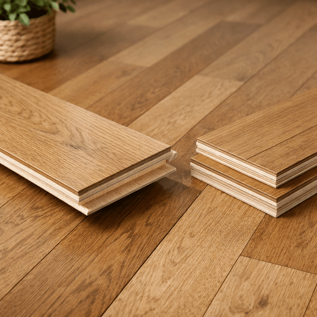 - 複合フローリング…合板の上に化粧材を貼り合わせた床材で、価格と耐久性のバランスが良い一般的なフローリング