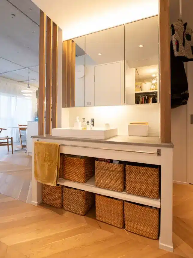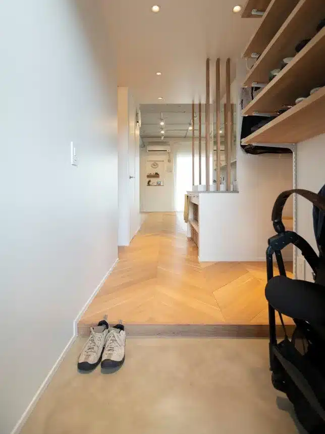 廊下や壁を最小限に抑え、空間をゆるやかにつなげている事例も目立ちます。面積が限られるマンションでは、廊下を減らすだけで体感的な広さが大きく変わります。また、視線や気配がつながることで、家族の距離感もちょうどよく保てます。