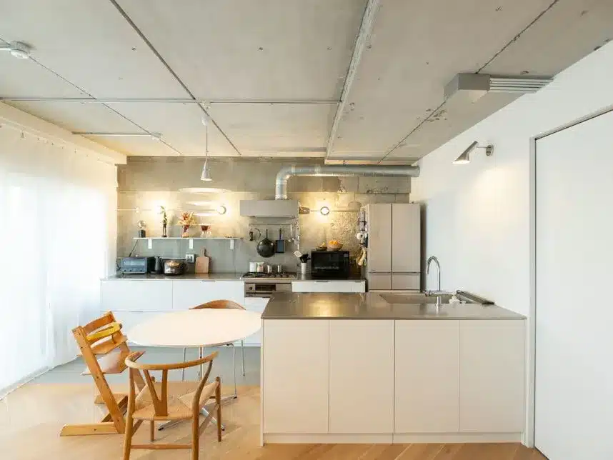 ライフスタイルの変化に合わせて空間構成を変化させられる“余白”を残し、暮らしやすい動線とオープンキッチンで繋がりを育む住まい。シンプルな内装に、躯体の荒々しさをアクセントにしました。思い出を飾るスペースや使い勝手の良い収納が、毎日の小さな幸せを積み重ねていく暮らしを叶えます。