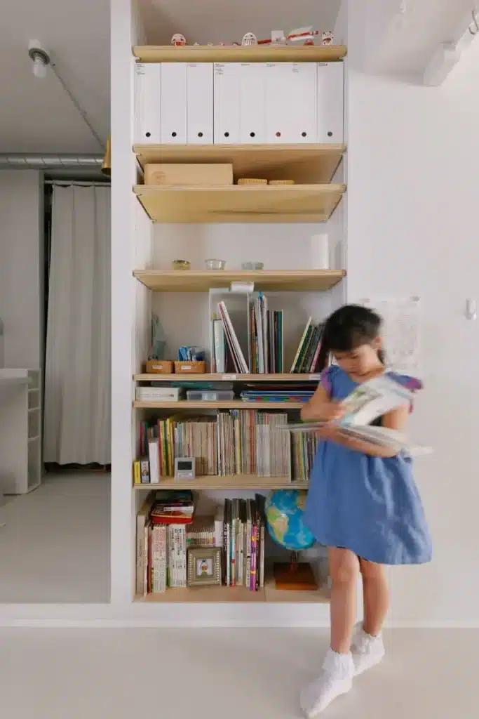 壁で空間を固定せず、家具や造作でゆるやかにゾーニングした住まい。子どもの成長や暮らし方の変化に合わせて、空間の役割を柔軟に変えられるのが特徴です。