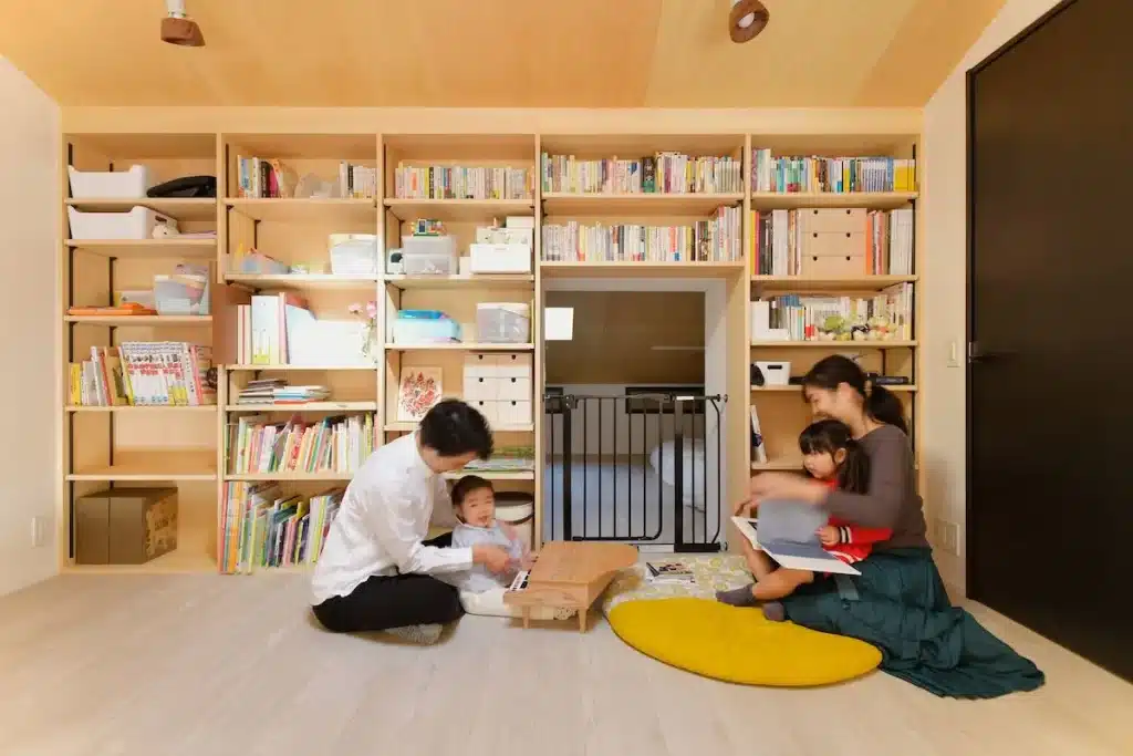 お施主様も「一人の時は読み終えた本を処分してましたが、これだけ大きかったらお気に入りをとっておけますし、子どもの絵本を買うのも好きなので、並べておいて夜選んで読み聞かせができるので気に入っています。」とのこと。