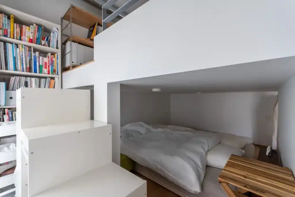 空間の広さを確保するために、2つの箱型ロフトを造作し、2倍のスペースとして使えるようにした事例です。